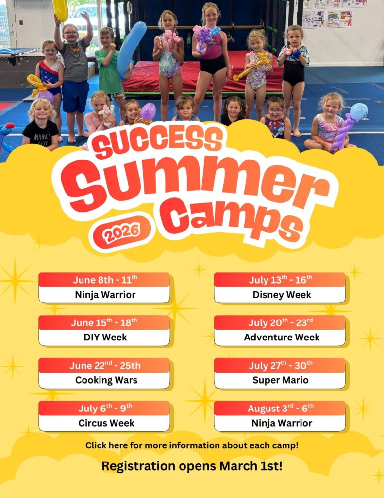 Every athletes’ goals and objectives vary when participating in the sport of gymnastics. No matter what your athlete’s goal, the coaches & staff at SUCCESS are here to make their dreams come alive and help them achieve SUCCESS!